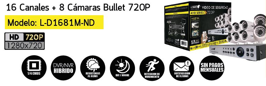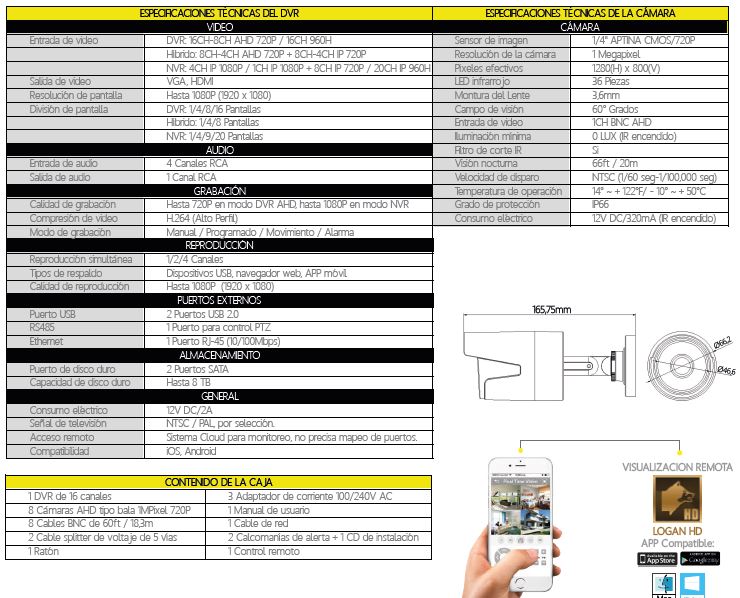 Kit DVR 16 Canales y 8 Camaras AHD