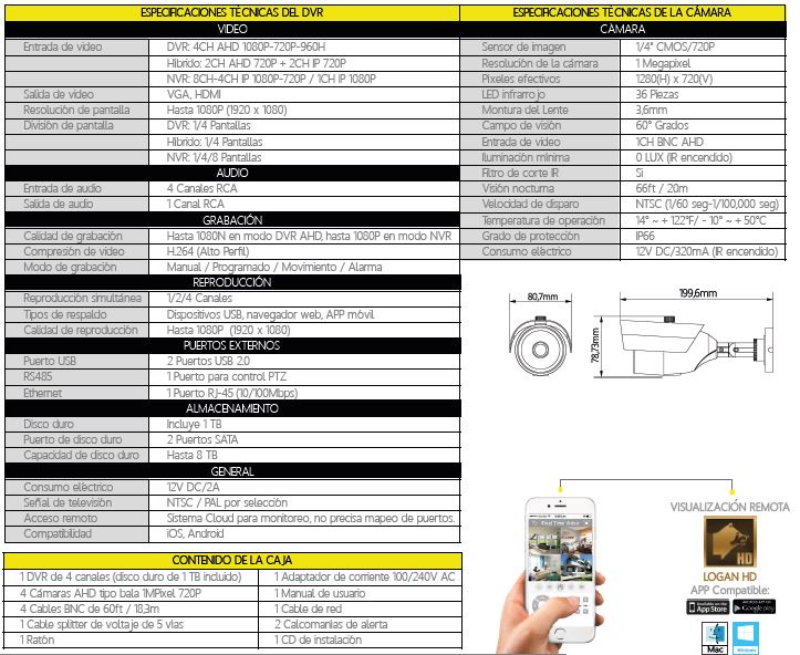 Kit Dvr 4 Canales y 2 Camaras AHD