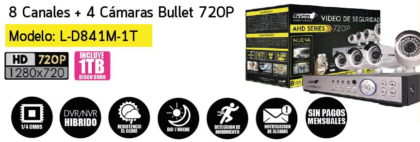 Kit DVR All in One 8 Canales y 4 Camaras