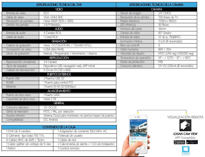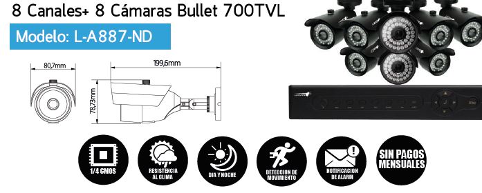 Kit DVR 8 Canales y 8 Camaras - Análogicos - 700TVL